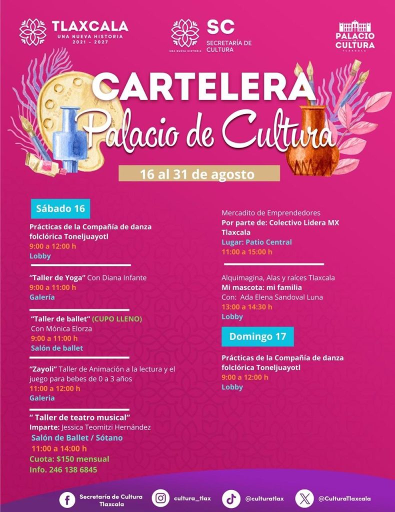 Cartelera Palacio de Cultura Segunda quincena de Agosto 2025