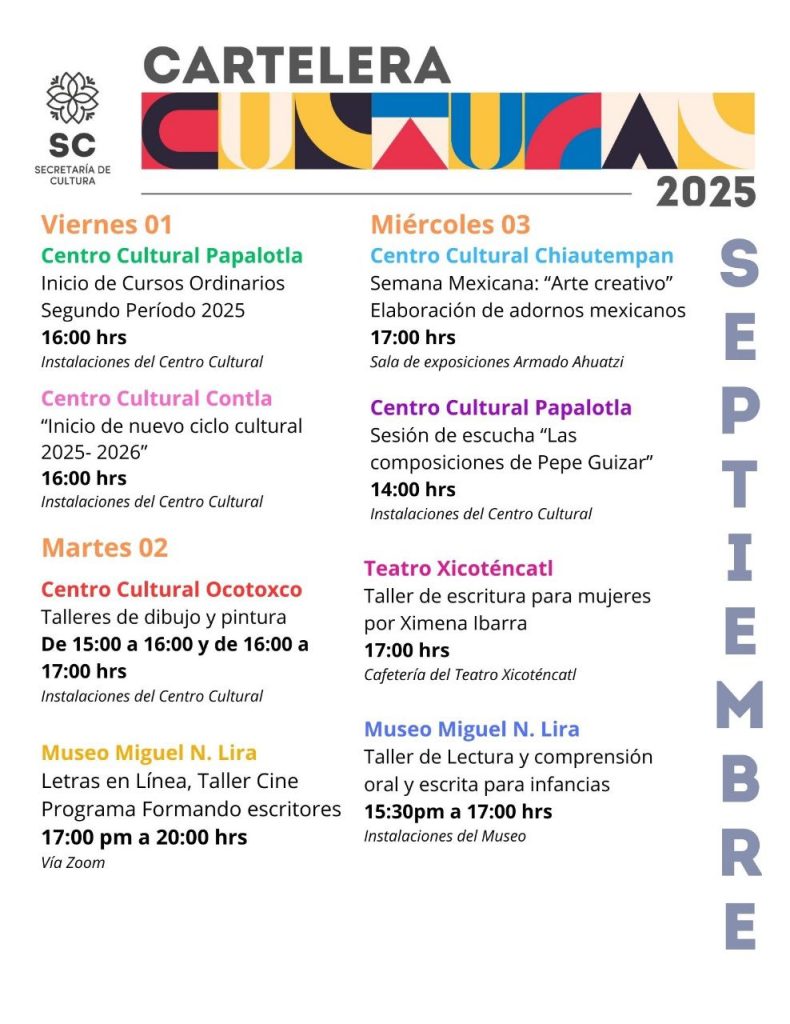 Cartelera Cultural del Palacio de la Cultura Septiembre 2025