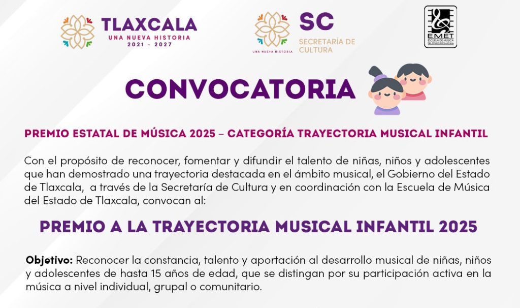 Convocatoria Premio Estatal de Música 2025 – Categoria Trayectoria Musical Infantil
